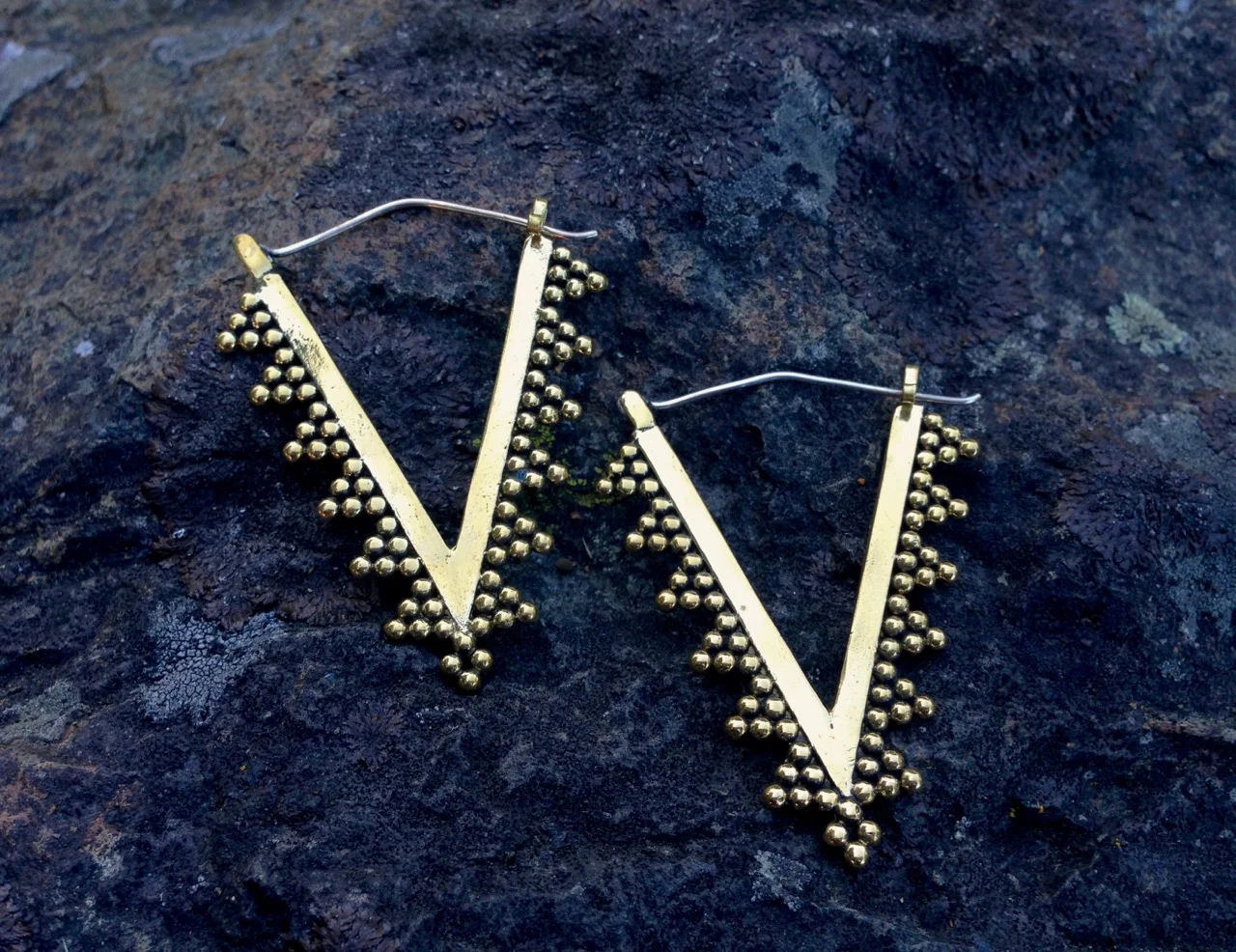 The downward facing triangle is an ancient traditional symbol in India for Shakti, the power of the feminine. The triangle represents the yoni, female genitalia, and our yonis' energy as the source of all creation, both in giving birth and in the raw power of pure dynamic feminine energy.
